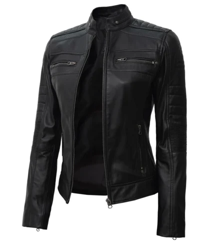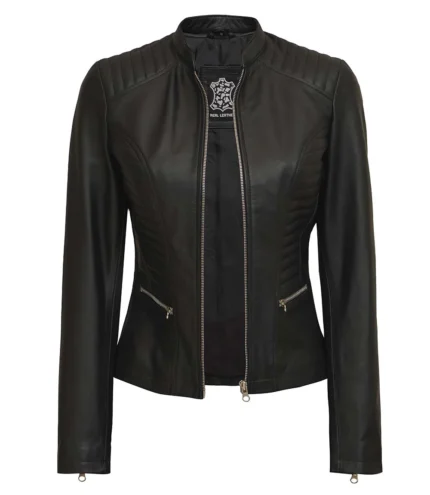 Women’s Black Cafe Racer Leather Jacket