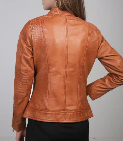 Women’s Tan Brown Cafe Racer Leather Jacket