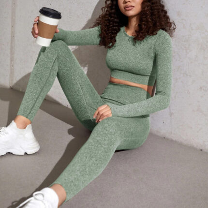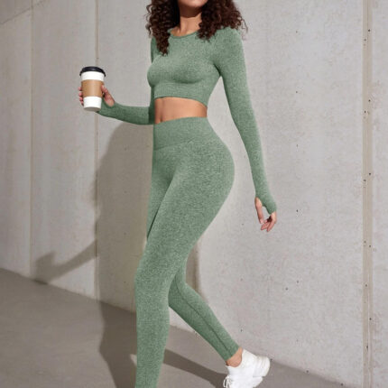 2pcs Seamless Ombre Yoga Set Gym Suit Racerback Active bra & Scrunch Butt Leggings
