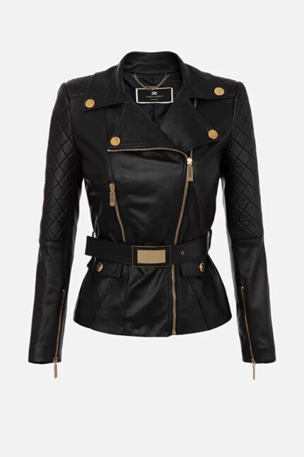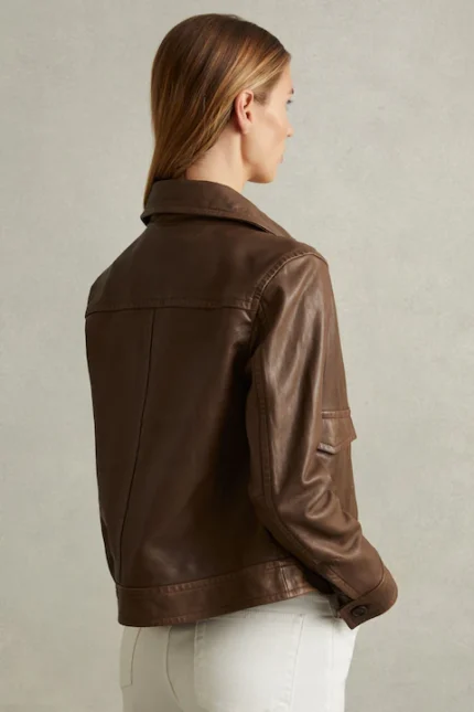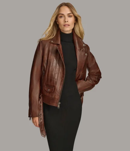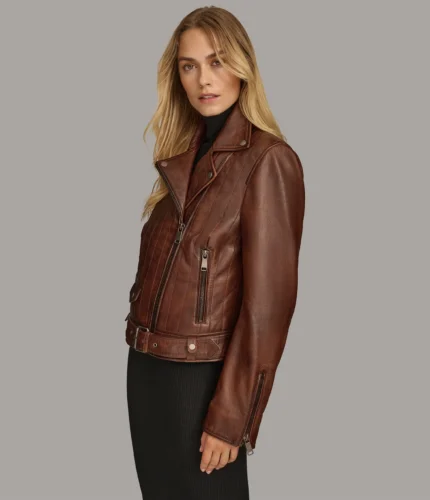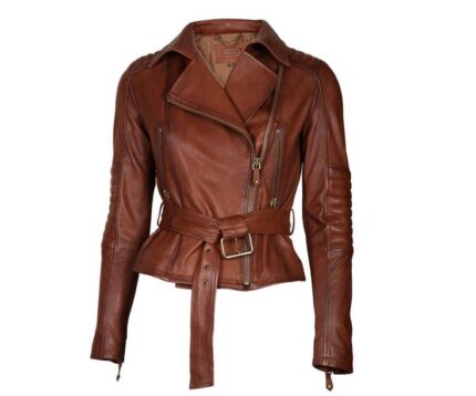Amy Women’s Tan Cafe Racer Slim Fit Leather Jacket