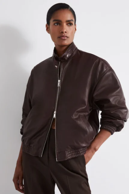 Berry Dru Atelier Leather Latched-Collar Bomber Jacket